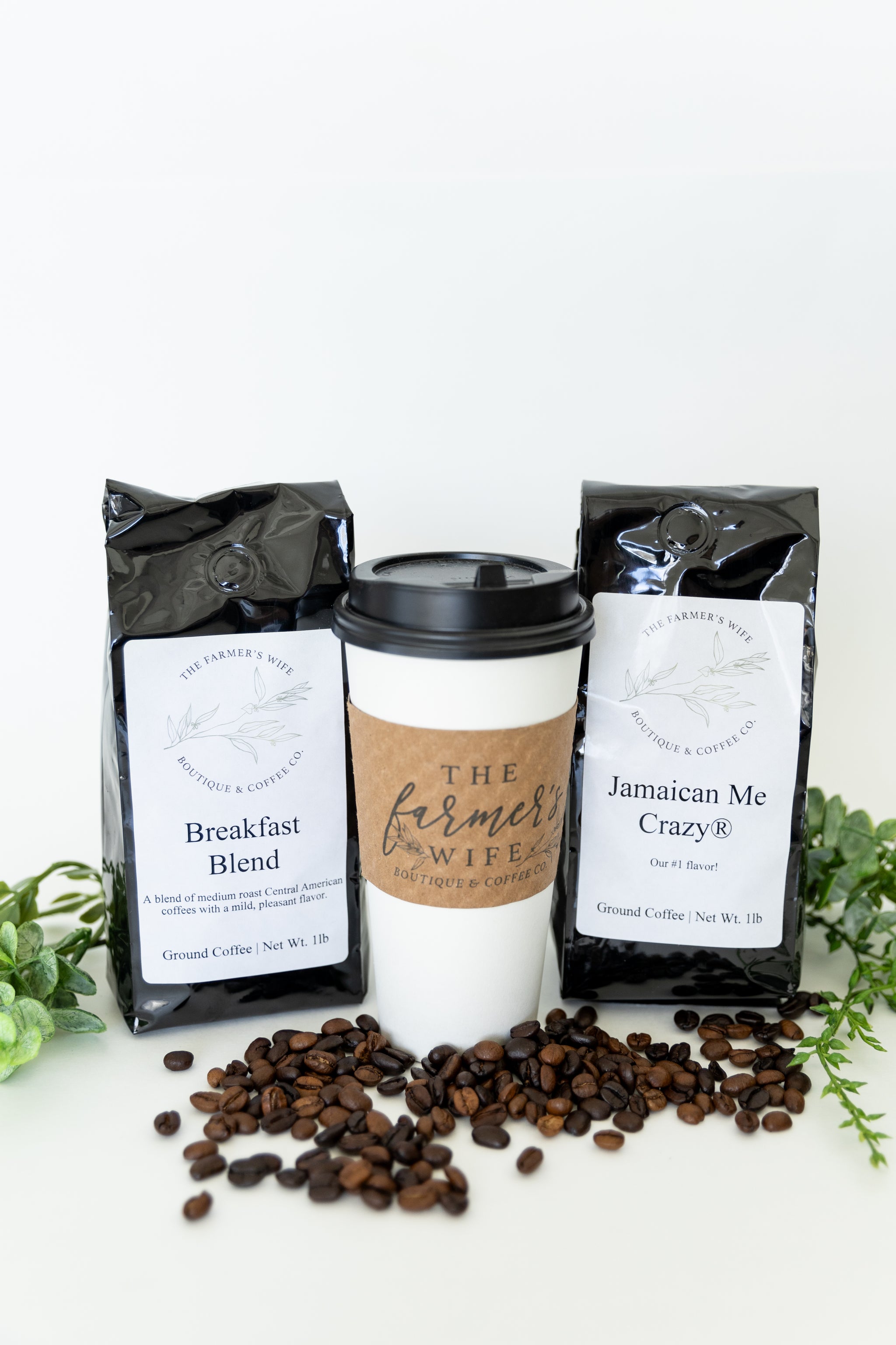 At The Farmer's Wife, we’d classify our style as a mixture of rustic chic. With a little bit of sparkle, natural wood and galvanized features we want to make your experience feel laid back, no matter if you’re sitting down to enjoy some coffee or shopping! That's why we love to offer a variety of gifts for all ages including candles, graphic tees, ground + whole bean coffee, candles, jewelry and more!